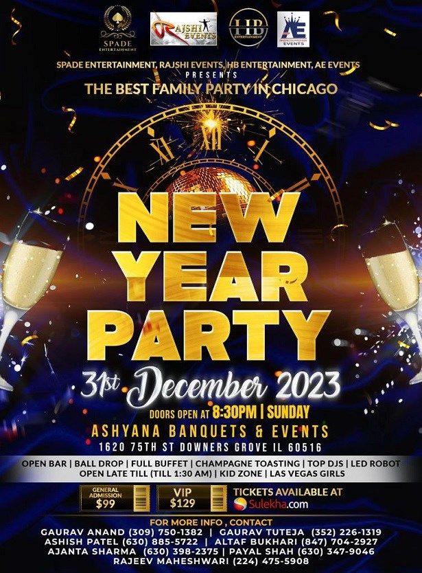 NYE 2024 (Bollywood) Ashyana Banquets Downers Grove Tickets, Sun