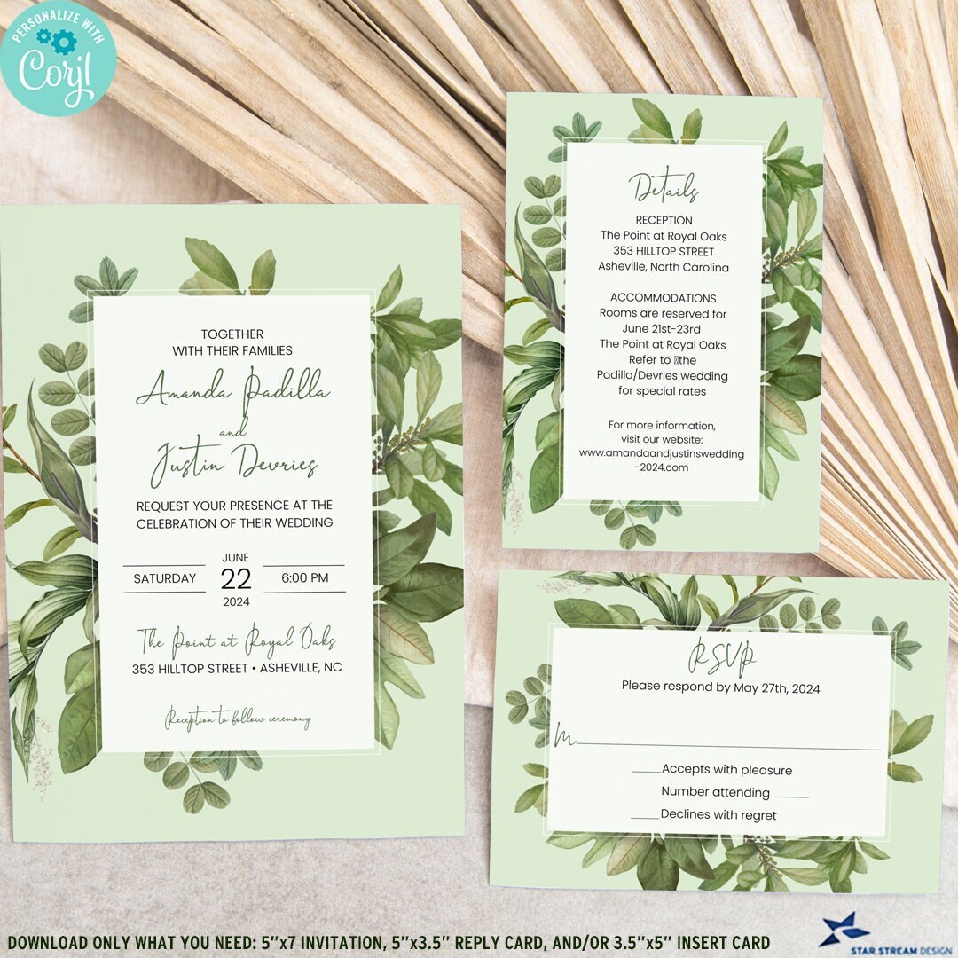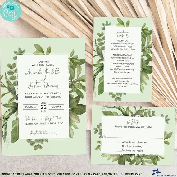 Greenery Garden Frame Wedding Stationery Suite Choose Invite Etsy